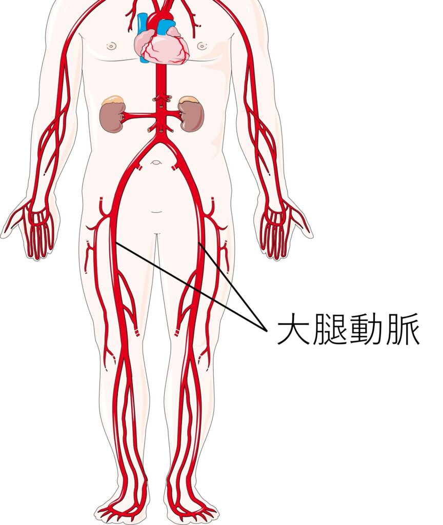 足全体の血流の大元は、太ももの内側を通る大腿動脈と呼ばれる動脈です。