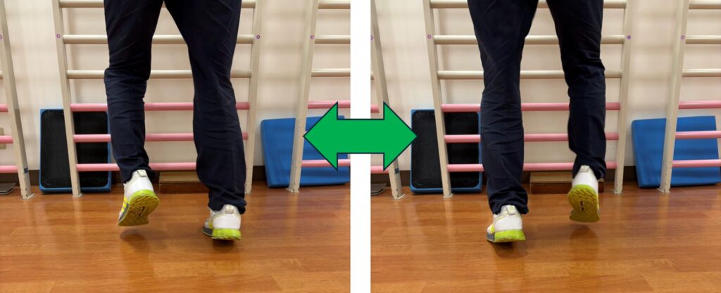 - 膝を伸ばして足の親指で地面を踏むように行う